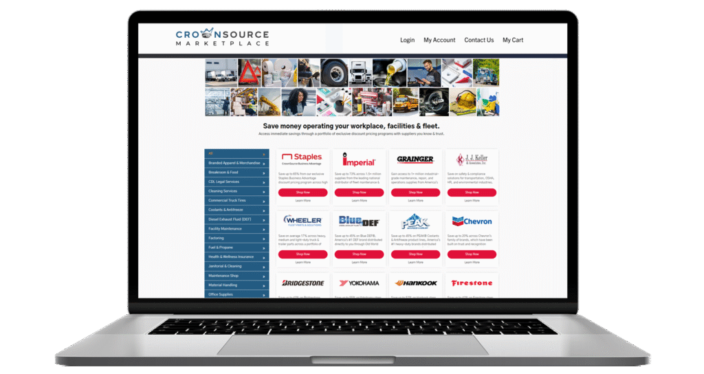 CrownSource connects you to a wide range of products to save you more money maintaining your fleet, offices, shops, and more from the market-leading manufacturers, suppliers, dealers and truck stops you trust most through its two easy online ordering solutions.